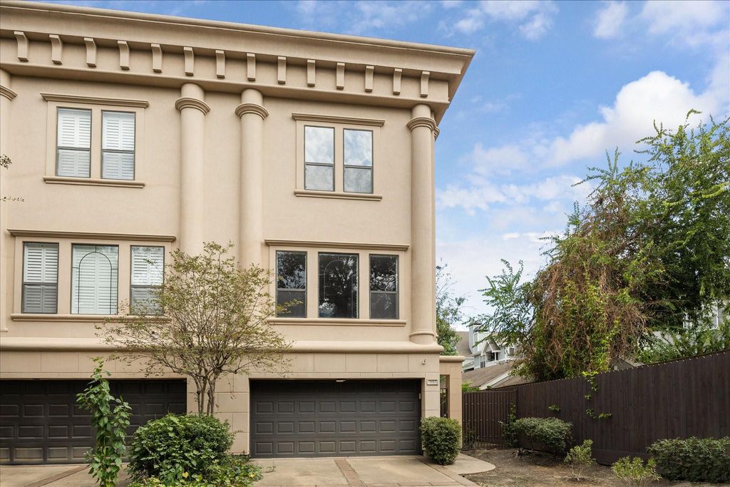 Beautifully updated townhome features 3 large bedrooms, 3/1 large baths and oversized closets, as well as an abundance of built in storage. Located on a horseshoe street with no thru traffic in heart of Upper Kirby, West Court offers a true neighborhood feel with close proximity to high-end shops and restaurants. The open floorplan boasts original hardwood floors, wrought iron railings, & lots of natural light framed by plantation shutters. Gourmet kitchen features stainless steel appliances: 5 burner gas cooktop; dual ovens; and oversized refrigerator with a serene balcony just off the breakfast area. The 1st floor bedroom (used as a library/study) features wet bar, full bath, and French door access to the garden patio. Homeowner has taken great care of the home including install of a whole house water filter (2024), and new fence (2025). Refrigerator, washer and dryer included. Home is zoned to Poe, Lanier, & Lamar.