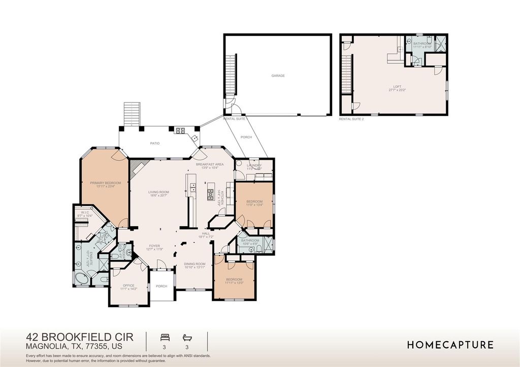 Welcome home to 42 Brookfield Circle, a beautifully maintained home situated on a generous 0.6-acre lot in the tranquil community of The Villages of Heritage Point - zoned to Magnolia ISD! This 4-bedroom, 3.5-bath property offers the perfect blend of comfort, space, and versatility, including a separate garage apartment, ideal for guests, extended family, or rental income. Inside, you’ll find an open-concept layout with a spacious kitchen featuring granite countertops, rich cabinetry, and seamless flow into the bright and inviting living area. The private primary suite offers a spa-like bath with a walk-in shower, soaking tub, and large walk-in closet. Secondary bedrooms are thoughtfully positioned for added privacy. Step outside to a peaceful backyard oasis with no back neighbors, tiered landscaping, mature trees, and plenty of space to relax, garden, or entertain. This unique property includes a 24kW Generac whole-home generator - never worry about power loss again!
