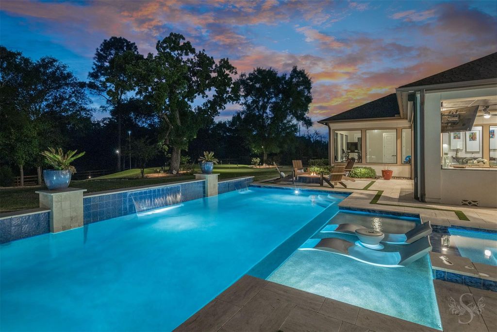 Extraordinary resort-style estate on a one-acre lot in prestigious Fulshear Run. This stunning two-story home features soaring ceilings, rich hardwood-look flooring, a stone accent wall, and an open-concept living area with fireplace and floor-to-ceiling windows. The chef’s kitchen boasts a granite island, professional 6-burner gas range, double wall ovens, and a built-in wine grotto. The primary suite offers a spa bath with freestanding Jacuzzi soaking tub, walk-through shower, and dual custom closets. Upstairs includes spacious secondary bedrooms, a full kitchenette, and a dedicated home gym overlooking the pool. Outside, enjoy a resort-style pool and spa with travertine decking, fully equipped outdoor kitchen, covered living area, and a private putting green. Gated entry, privacy fencing, whole house generator, and mature trees complete this one-of-a-kind property.