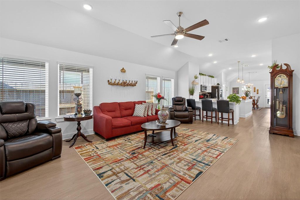 Nearly new & barely lived in, this rare 3-bedroom, 2.5-bath new construction home (less than 1 year old) is tucked away on a quiet cul-de-sac & offers sought-after **NO carpet** interior. The eat-in kitchen is a showstopper with huge center island, quartz countertops, SS appliances, 5-burner gas range, 42” cabinetry & spacious dining area. The massive family room is perfect for entertaining, while the rare half bath adds everyday convenience. The primary retreat easily accommodates king-sized furniture & features vaulted ceiling, sitting area & French doors leading to a spa-like ensuite w/dual vanities, oversized soaking tub, separate shower & large walk-in closet. Two generously sized secondary bedrooms & full bath complete the interior. Step outside to a massive backyard w/covered patio—ideal for enjoying warm Texas days. Full sprinklers, gutters, tankless water heater, refrigerator, security cameras, video doorbell & wall mounts included! Don't wait to build..this GEM is ready N