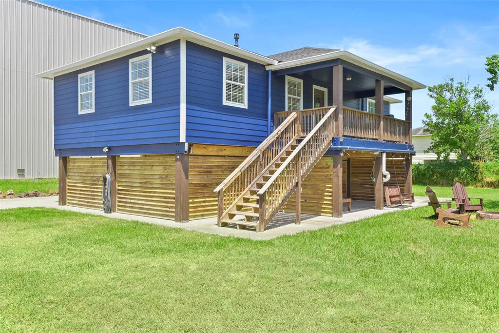 Beautiful home in San Leon ! Freshly painted interior and exterior (May 2025). The house sits on four lots so you have plenty of space for all your toys (boats, RV's, etc). Enjoy evenings on your covered front porch or down by the firepit. There are teak (wood) floors in living areas, stainless appliances and granite countertops in kitchen. All of the bedrooms are carpeted. There is a closet that was converted into a utility room. The HVAC was replaced 7/29/25- (condenser). Fridge, washer and dryer are included with sale. Underneath the home you have tons of space for a workshop or boat/car storage. There is an RV pad w/ hookups. The possibilities are endless. The driveway is gated off which is nice for privacy.