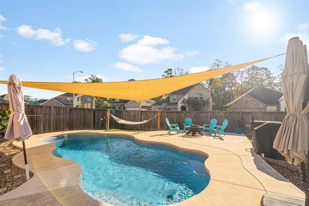 MUST SELL-Relocation Sale! Discover unbeatable value in Bridges on Lake Houston with one of the lowest price per sq ft with a pool! This tech-ready dream home offers resort-style living with a sparkling pool, spacious corner lot, and raised garden beds—ideal for smart irrigation and sustainable living. Inside, enjoy soaring ceilings, open-concept design, and natural light—perfect for energy-efficient upgrades and smart home automation. Multiple outdoor seating areas create a seamless indoor-outdoor flow for entertaining or relaxing. Surrounded by tranquil views, this home blends comfort, charm, and future-forward living. Whether you're hosting guests or enjoying a peaceful evening, this property is designed for enhanced lifestyle and connected living. Bring all offers—this opportunity won’t last!
