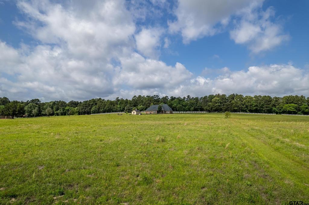 Immaculate custom home on 6.45 acres in Flint, offering the perfect blend of peaceful country living just minutes from all the conveniences of Tyler. This 3 bedroom, 2 bath home features a 2 car garage plus a shop and versatile flex space, ideal for a second living area, office, or formal dining. Designed with accessibility in mind, the home includes wheelchair accessible doorways and thoughtful layout throughout. Inside, you'll find gorgeous finishes including travertine floors, tall ceilings, arched doorways, custom trim work, and beautiful ceiling treatments. The inviting family room opens seamlessly to the kitchen and features a gas log fireplace, creating a warm and welcoming atmosphere. The kitchen is well-appointed with granite countertops, island, stainless appliances, pantry, and custom cabinetry, along with plantation shutters on many of the windows. The spacious primary suite offers a double tray ceiling and an ensuite bath with separate vanities, soaking tub, separate shower, water closet, and walk-in closet. Two guest bedrooms share a full, hall bath with double vanity, and storage is abundant throughout. Updates include new interior paint in 2022, new oven 2024, new dishwasher 2026, and new HVAC 2025 (both inside and out.) Additional highlights include a laundry room with sink and built-in desk or coffee bar area, extra concrete for additional parking, security gate, and a welcoming white rail fence with automatic entry. Enjoy the serene setting and beautiful acreage views from the covered back patio, all with no close neighbors for added privacy. Come See! Come Buy!