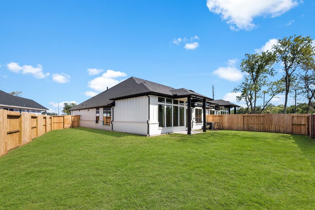 Presenting a beautiful, newly constructed 1-story home in the highly desirable Sienna Community. This home offers 3 bedrooms, 2 bathrooms, and a variety of amenities. Featuring elegant tile flooring, sleek granite countertops, stainless steel appliances, and a spacious walk-in pantry, this property is designed for modern living. The open living room is bright and inviting, and the fenced backyard provides a private retreat with no rear neighbors. The luxurious primary bath includes built-in shelves, an oversized sink area, and a generous walk-in closet. Secondary bedrooms are equally spacious with large closets. Enjoy a cozy covered patio, perfect for relaxing outdoors. It is zoned to the renowned Fort Bend ISD, including Leonetti Elementary, and just a short drive from Highway 6 for easy commuting.