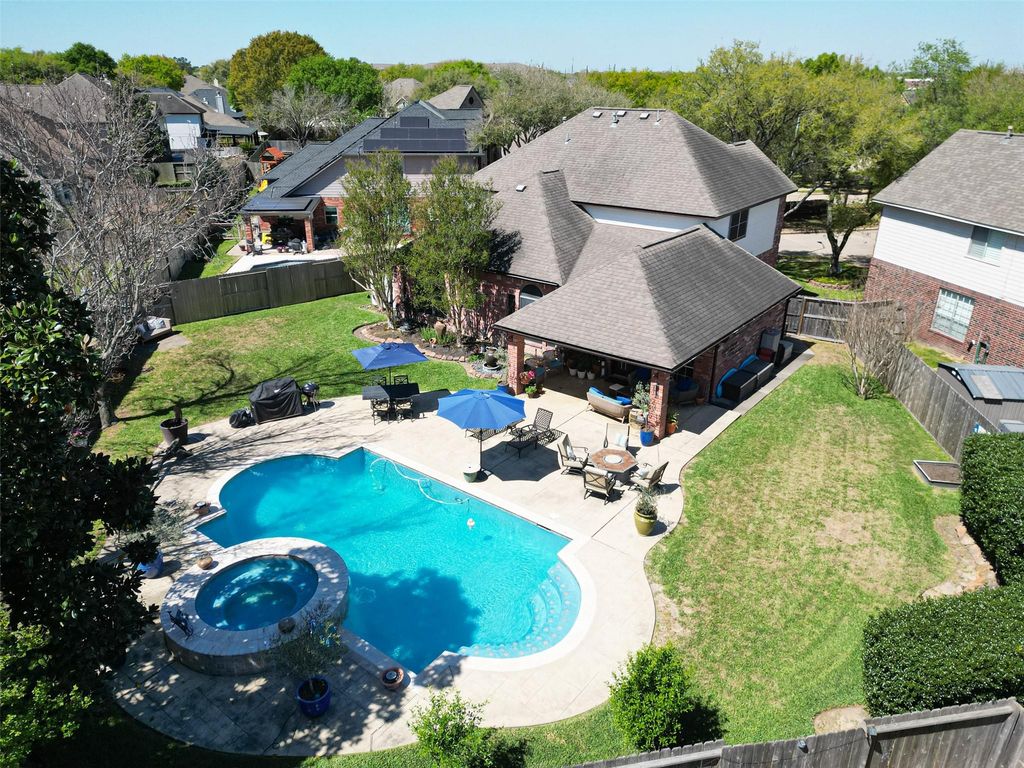 Tucked away on a quiet cul-de-sac in the gated community of Brookside Court, this one-of-a-kind 4-bedroom, 2.5-bath home is the one buyers wait for. Meticulously maintained by its original owners, it’s filled with thoughtful custom touches throughout-—including a striking black iron stair railing and custom landing. The backyard steals the show with a pool, hot tub, and lush landscaping—your own private retreat, complete with drip irrigation on timers. Entertain effortlessly with Bose surround sound inside and out. Inside, the updated primary bath offers a spa-like escape with a freestanding tub and separate shower. A light-filled sunroom opens to the patio, blending indoor and outdoor living beautifully. Plantation shutters, a custom stained glass window, and a gas log fireplace add warmth and character. The open kitchen features Silestone counters, stainless steel appliances, under-cabinet lighting, a large walk-in pantry, abundant cabinetry, and a wine fridge in a custom nook.