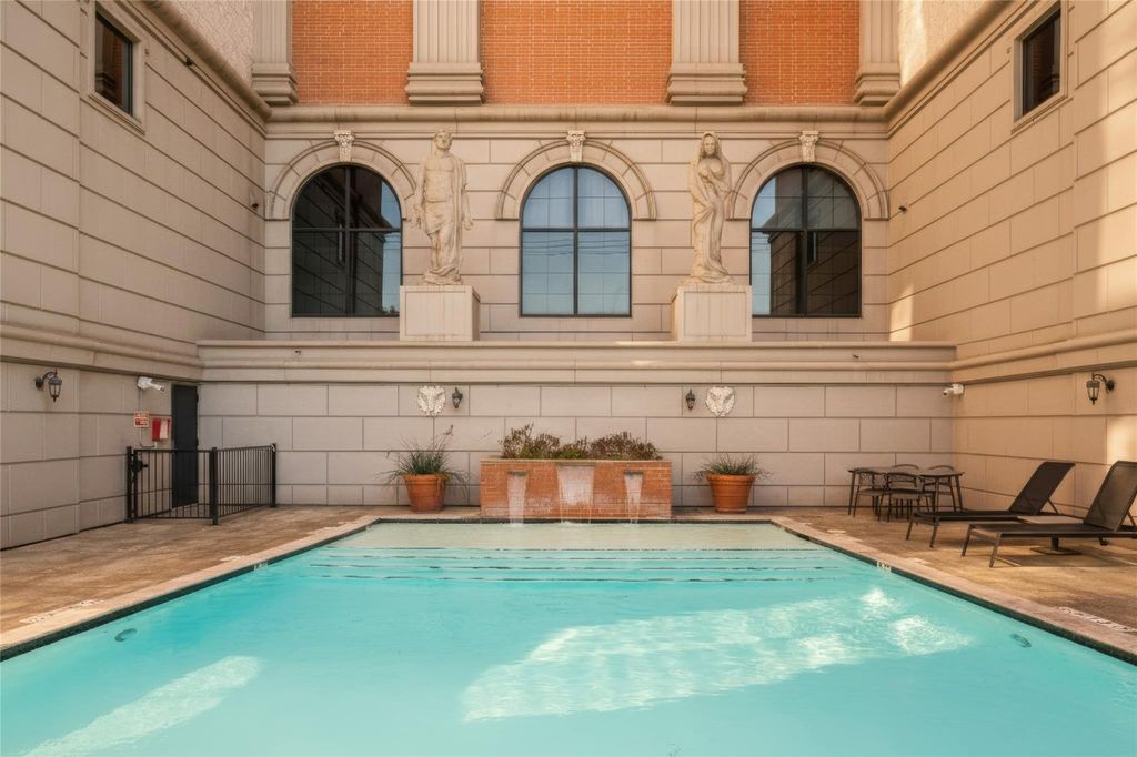 Stylish, chic, and walkability score of ten! This extensively renovated, corner-unit condominium at the Gotham gives you the opportunity to live in a sought after mid-rise on the perimeter of River Oaks, close to myriad restaurants and retail. The first floor includes a welcoming foyer with well-appointed full bath and a marble, island kitchen with Monogram stainless steel appliances and breakfast bar. A natural flow to the open living and dining areas allows flexibility for creating personalized spaces that enjoy the natural light peering in from the large statement window. Upstairs, you will find two bedrooms, walk-in closets, and a large, full bath with double sinks, marble finishes, and spacious shower. This concierge building offers a pretty swimming pool with lounging deck and outdoor grill. Two parking spaces are included with the unit. Please call for a personal tour! Immediate occupancy available and move-in ready.