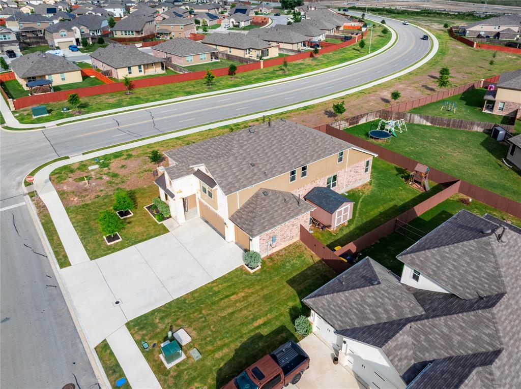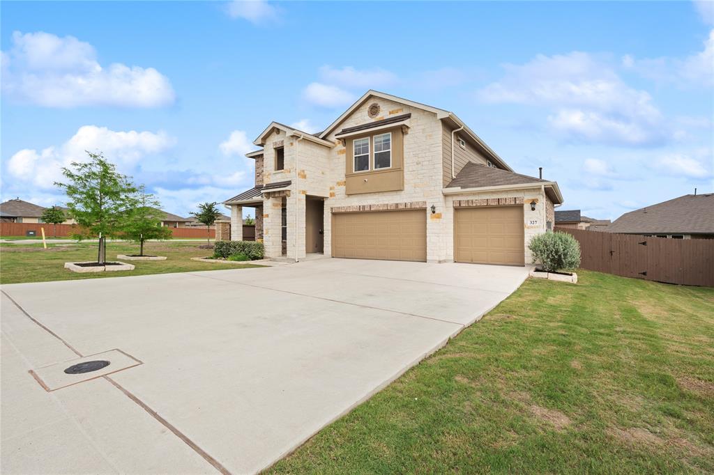 Welcome to The Clydesdale, Steele Creek’s largest two-story home! Situated on an impressive corner lot this beautifully upgraded 5-bedroom, 3.5-bathroom residence offers 3,534 square feet of luxurious living space and a spacious 3-car garage. 5 bedrooms each are oversized with 2 having attached bathes. Home offers 2 dining areas or flex spaces, Home office space, 2 living areas one up and one down. Plenty of room to spread out and relax indoors. Thoughtfully refreshed throughout, the home features a stunning kitchen with a farm house sink, gas range, large pantry, custom cabinet color scheme and an abundance of cabinetry. Accented with elegant champagne gold hardware, and granite countertops. The entire interior has been revitalized with a fresh coat of paint, and four of the five bedrooms showcase stylish accent walls. The versatile fifth bedroom is ideal as a media room, home office, or additional guest suite. Step outside to enjoy exceptional outdoor living. The backyard is ready to host with an expansive 14’ x 14’ wooden deck with seating for eight, a fun playground set with two swings, and an 8’ x 10’ storage shed painted to match the home. Additional upgrades include a show-stopping finished 3 car garage with textured walls, fresh paint, and sleek granite-coated epoxy floors, plus full-coverage gutters, front and rear irrigation, proximity cameras, and ADT security for peace of mind. Perfectly situated directly across from the community center, this home offers unparalleled access to Steele Creek’s top amenities, including the gym, resort-style pool, splash pad, playground, park, and basketball courts. Located in the rapidly growing Cibolo area, you’ll love the convenient access to HEB, major highways, shopping, and dining. This move-in-ready gem also comes with a rare opportunity—an assumable VA loan at an incredible 4.99% interest rate. Don’t miss your chance to own one of Steele Creek’s most desirable homes in one of the best locations
