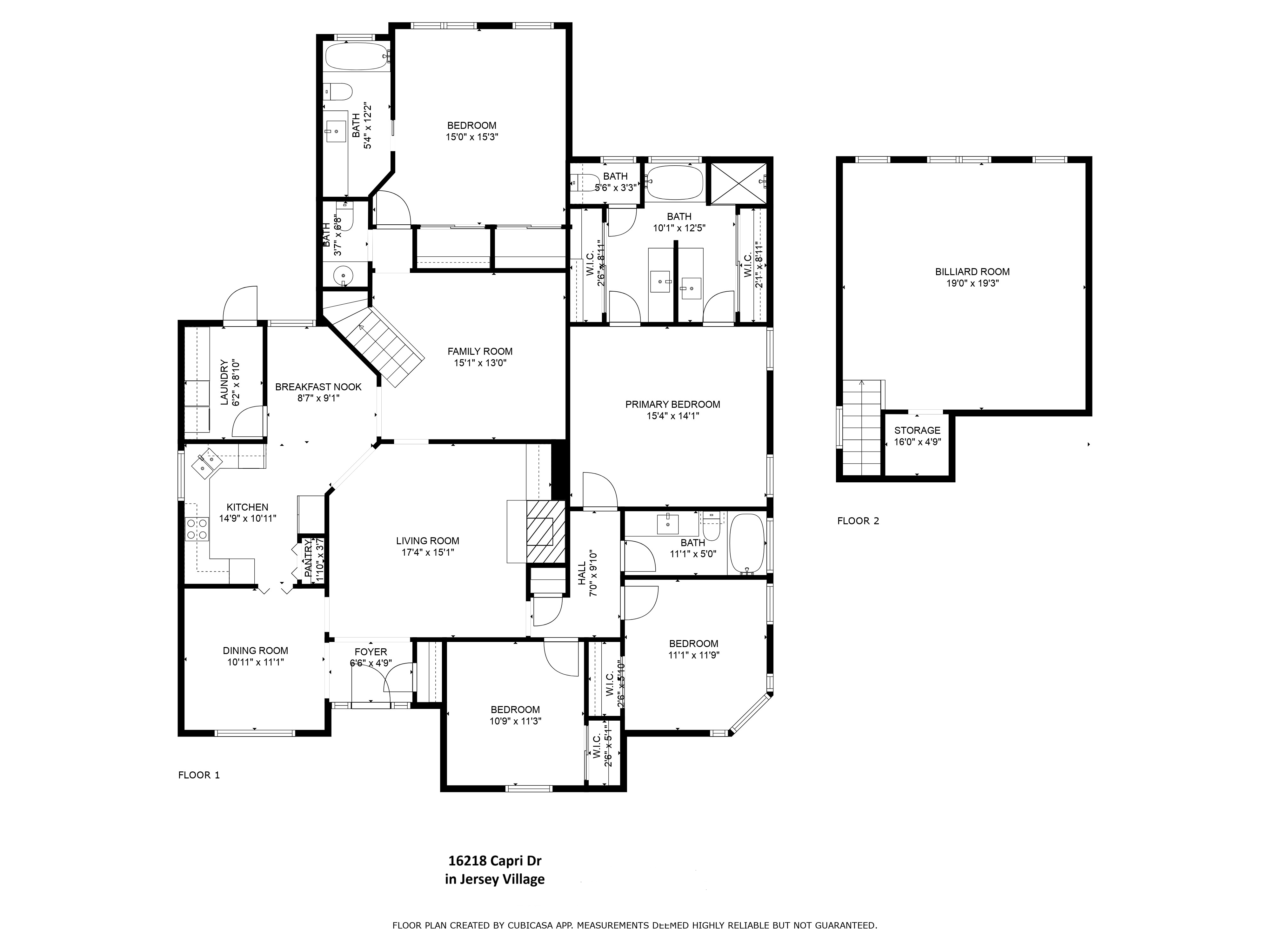 *ALL BEDROOMS DOWN* Lovely 1.5-story, 4/3.5/2 home on a captivating tree-lined street in the heart of Jersey Village. Offers 2-owner's suites w/ private ensuite baths. Roof (2021), Double pane windows (2018), 14 SEER 4-ton A/C (10/25), Electrical panel (2024), LVP flooring (2023), Carpet (2025), Quartz countertops & fixtures in kitchen & all baths (2023), Fence (2023), Copper plumbing, & MORE. True 2-car wide driveway leads to 2-car garage & porte corchere. Living w/ brick FP w/ gas. Formal dining. Family rm w/ vaulted ceiling. Versatile living spaces could be repurposed. Kitchen w/ SS appls (MW, convec oven, DW, refrigerator), glasstop downdraft cooktop & pantry. Owner's ensuite bath w/ designated vanities & dressing areas, sep tub & walk-in shower. 2nd flr: Gmrm ONLY! Fully fenced yard. Sprinkler sys. Ideal location for commuters w/ easy access to Hwy 290 & Bltwy 8. Close to shopping, restaurants, golf, parks, CyFair ISD schools, & MORE. Low tax rate, no HOA or MUD. NEVER FLOODED.