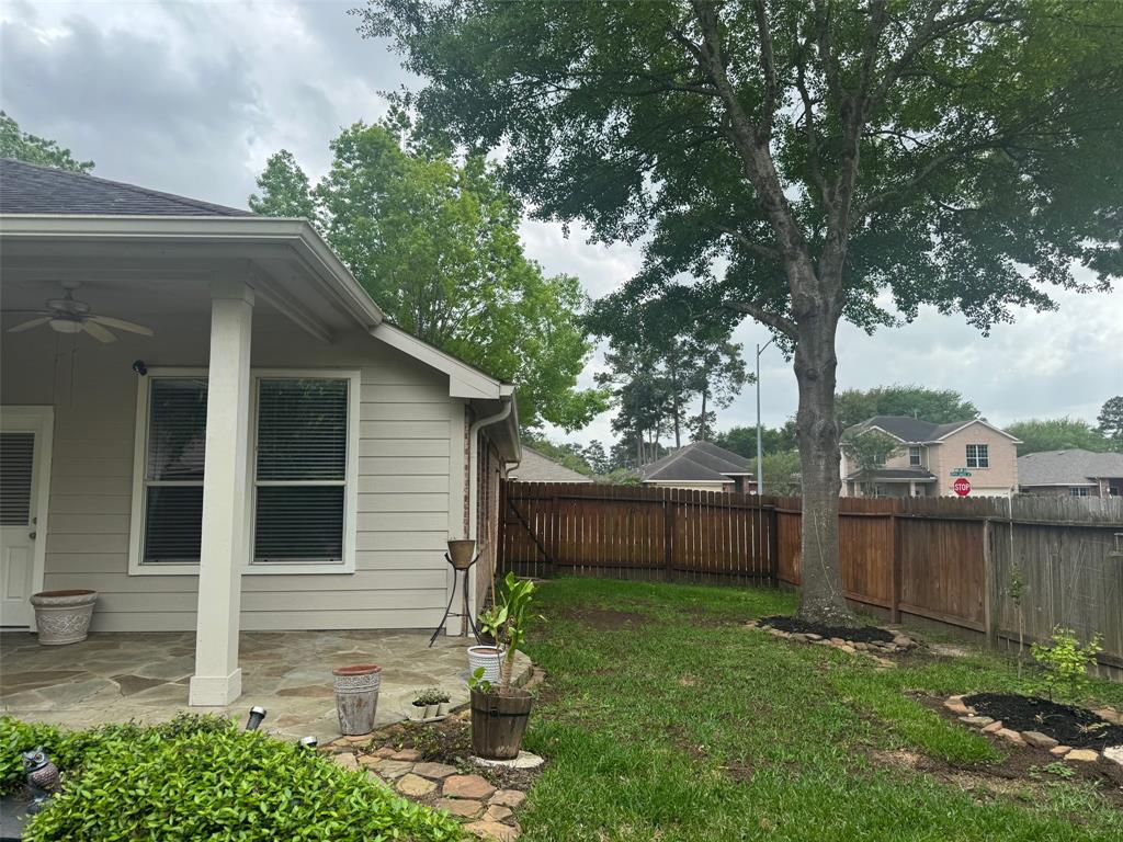 This is the one you've been looking for! Nicely updated ONE STORY home nestled into a corner lot in a fantastic wooded neighborhood on a quiet street. This open layout home has 3 bedrooms, 2 baths, a 2 car garage, updated kitchen with stainless steel appliances, double ovens, and a large breakfast bar plus Formal dining room that could also be a home office, game room, play room, etc. Beautiful bamboo WOOD FLOORING throughout all bedrooms and main living areas. No carpet in this house (ex 1 closet). The primary bedroom is separate from the other two rooms, large enough for a king bed and has a sitting area that overlooks the lovely, quiet, and landscaped back yard and water feature. Step outside to the oversized flagstone covered back patio to enjoy the scene and relaxing sounds of the water. Zoned to highly rated Cy-fair schools. Also listed for lease. Owner is related to listing agent.