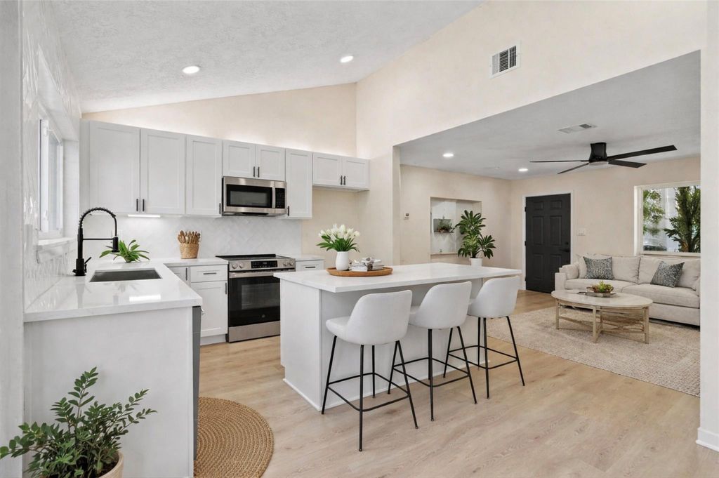 Welcome to this charming single-story home, where style seamlessly blends with comfort. Inside, you'll find an inviting space with four spacious bedrooms and two beautifully designed bathrooms. The living room is generously bathed in natural light, showcasing the recessed lighting, a brand-new ceiling fan, and luxury vinyl plank flooring. Recent updates include new plumbing, windows, air conditioning, and a fresh coat of paint. The gourmet kitchen, a dream for any cooking enthusiast, boasts exquisite quartz countertops, sleek stainless steel appliances, and ample cabinet storage. The tranquil primary bedroom features plush new carpeting and an en suite bathroom with quartz countertops, a walk-in shower, and a secondary bathroom with a full bath and tub. The large backyard offers plenty of space for both relaxation and outdoor entertainment. Conveniently situated a short distance from dining and shopping, this home is a true haven you'll be eager to call your own.