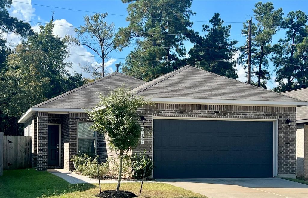 NO BACK NEIGHBORS! Conveniently located central to Tomball, Magnolia, and The Woodlands, this barely lived-in smoke-free, pet-free home boasts 3 bedrooms, 2 bathrooms, and wood look tile flooring and carpet in bedrooms. With neutral gray tones throughout, the kitchen offers a 5-burner gas range, granite countertops, built-in microwave and breakfast bar. The Primary Bath features a large shower and walk-in closet, while the Secondary Bath includes a tub/shower combo. Additional highlights include an in-house Utility Room with storage closet, tankless water heater, back patio, fenced backyard, and backs up to wooded area. Don't miss out on this must-see property! *Room sizes approximate. *All information deemed correct, must be verified by Buyer if important.