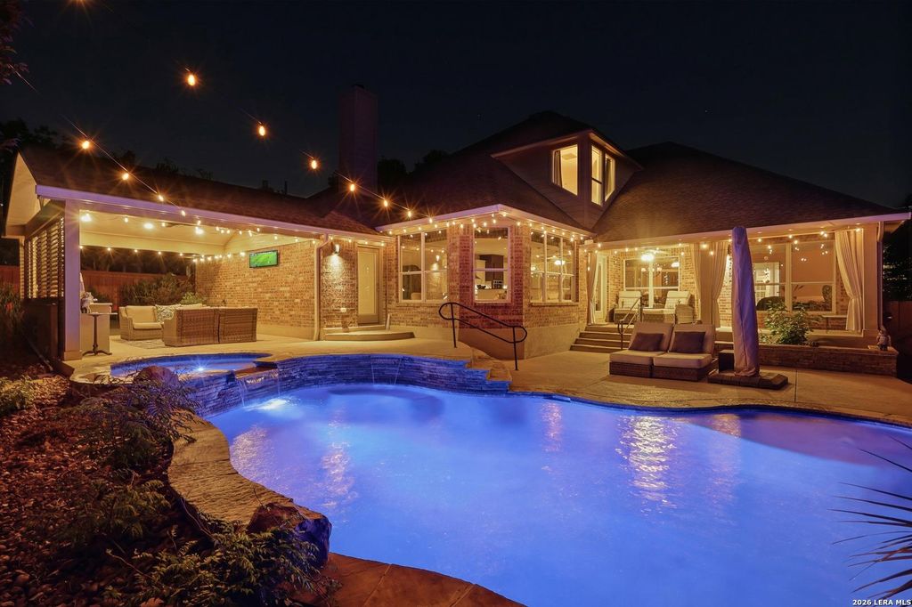 OPEN HOUSE SAT 5/2, 12-3PM. Welcome to 19003 Fargo Pass, a beautifully maintained one-story all-brick home on a desirable corner lot in the sought-after Stone Oak community of Iron Mountain Ranch. Offering 3,465 square feet of thoughtfully designed living space, this home features 4 spacious bedrooms and 3.5 baths, all on the main level with an expansive game room upstairs, ideal for entertaining or additional living space. A private flex room off the primary suite provides the perfect option for a home office, fitness room, or quiet retreat. Step inside to a freshly painted interior and an updated chef's kitchen complete with gas cooking, built-in oven and microwave, stainless steel refrigerator, and generous prep and gathering space. The open-concept layout flows effortlessly, making it ideal for both everyday living and hosting guests. Outdoors, unwind in your own backyard oasis featuring a heated in-ground pool and spa, cabana with outdoor grill, covered patio, and a fun mini golf