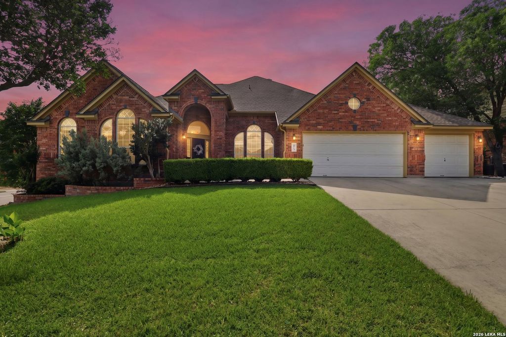 19003 Fargo Pass is listed for sale at $ 789,000. The Single-Family property has 4 bedrooms, 3 Full Bathrooms, 1 Half Bathroom, 3465 square feet and was built in 2005. The lot size is 0 Square feet. ##BR##OPEN HOUSE SAT 5/2, 12-3PM. Welcome to 19003 Fargo Pass, a beautifully maintained one-story all-brick home on a desirable corner lot in the sought-after Stone Oak community of Iron Mountain Ranch. Offering 3,465 square feet of thoughtfully designed living space, this home features 4 spacious bedrooms and 3.5 baths, all on the main level with an expansive game room upstairs, ideal for entertaining or additional living space. A private flex room off the primary suite provides the perfect option for a home office, fitness room, or quiet retreat. Step inside to a freshly painted interior and an updated chef’s kitchen complete with gas cooking, built-in oven and microwave, stainless steel refrigerator, and generous prep and gathering space. The open-concept layout flows effortlessly, making it ideal for both everyday living and hosting guests. Outdoors, unwind in your own backyard oasis featuring a heated in-ground pool and spa, cabana with outdoor grill, covered patio, and a fun mini golf
