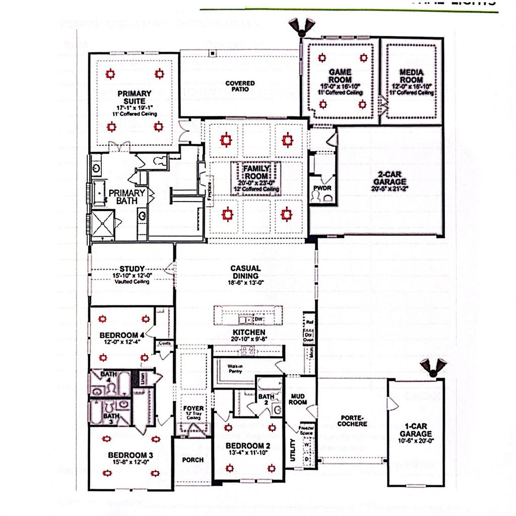 Luxury waterfront living on a premium lot in Cross Creek Ranch. Built in 2023, this exceptional 1-story home offers 3,926 SF with 4 bedrooms and 4.5 baths. Thoughtfully designed with an open-concept layout, coffered ceilings, game room, and fully equipped media room with speakers and projector, this home blends comfort and sophistication. The spacious living area flows seamlessly into the kitchen, ideal for entertaining. The primary suite overlooks the water and features a spa-like bath. Each secondary bedroom includes its own en-suite bath. Upgrades include a full-home Generac generator, Monogram appliances, his/her custom closets, LED lights in all bedrooms, security cameras, living room sliding door with access to outdoor patio, shades in living room with remote control, water softener, and a rare 3-car garage with a gated porte cochere. Enjoy tranquil waterfront views, premium lot privacy, and access to resort-style pools, trails, lakes, fitness center, and top-rated schools.