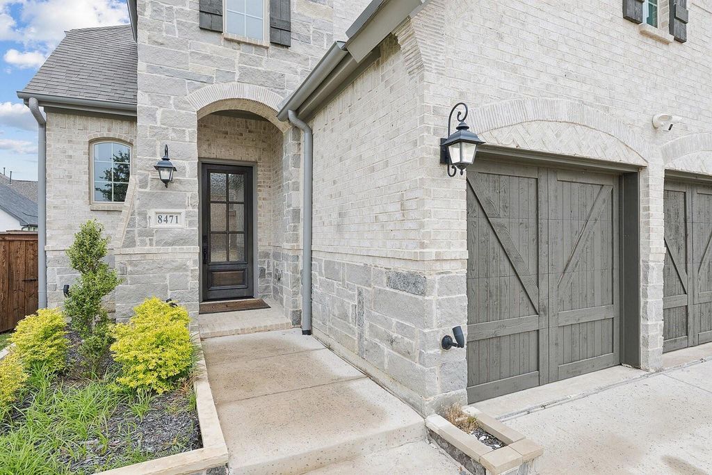 Beautifully appointed 4-bedroom home in the highly sought-after lakeside community of The Tribute, offering 2,978 square feet of thoughtfully designed living space with elevated modern finishes throughout. Welcome to 8471 Colburn — where a striking entry and rich wood flooring set the tone for a refined yet comfortable interior. The main level is designed for both everyday living and effortless entertaining, featuring a dining area and a spacious living room filled with natural light that flows seamlessly into the kitchen. The kitchen serves as the heart of the home, showcasing a large island, quartz countertops, gas cooktop, premium cabinetry, and modern appliances, all complemented by generous prep space and stylish design. The private primary suite is conveniently located on the first floor, offering a relaxing retreat with a well-appointed ensuite bath and ample closet space. A half bath and utility room add convenience and functionality. Upstairs, a versatile layout includes a large game room and a dedicated media room, creating ideal spaces for entertaining, movie nights, or flexible use. Three additional bedrooms and two full bathrooms provide comfortable accommodations for family, guests, or home office needs. Step outside to a beautifully designed backyard retreat featuring low-maintenance turf for year-round greenery, a custom putting green, and an outdoor kitchen—perfect for hosting gatherings or enjoying outdoor dining in a private setting. Located in The Tribute, residents enjoy resort-style amenities including pools, a splash park, dog park, playgrounds, pickleball courts, miles of scenic trails, and lake access. This home combines modern style, functional living, and an exceptional community setting—an outstanding opportunity in The Colony.