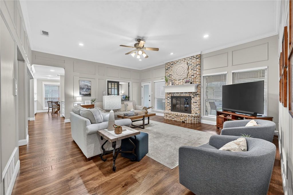 Nestled on a quiet, wooded cul-de-sac, this meticulously maintained home is ready for you to move right in. Bright and open with so many updates and attention to every detail. The charming curb appeal welcomes you in. Open layout with a huge living room with a cozy fireplace and pretty engineered wood floors. The windows let in so much natural light. The dining room is open to the living so it is perfect for famly dinners plus it has a butler's pantry style storage. The kitchen features updated cabinets is set up to maximize storage and workspace. Top of the line appliances, granite countertops plus tons of great light as it is open to the sunny breakfast room. The den is prefect for a tv room. game room or just a quiet living space. Convenient half bath for guests. The master bedroom is huge with space for an office or sitting area. The spa style bath features an updated soaking tub, double sinks and closets plus a glass shower. Nice sized secondary bedrooms. The second bath is also updated. Large covered patio is perfect for outdoor entertaining or just to relax and enjoy. Yard for fun and play plus a storage shed. This home has been lovingly cared for and it shows!