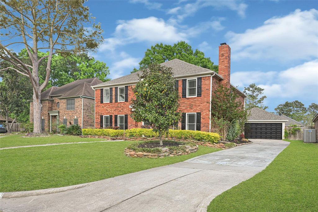Beautifully updated home in the Oaks Atascocita offering a spacious and inviting layout. Fresh interior paint, new ceiling fans, and abundant natural light create a bright and comfortable atmosphere throughout, complemented by elegant plantation shutters. The main living area features a cozy gas log fireplace and opens to a well-appointed kitchen with a farmhouse sink, perfect for everyday living and entertaining. Upstairs, you’ll find warm wood flooring that adds character and style. The primary suite provides a relaxing retreat with a double soaking tub, ideal for unwinding at the end of the day. Additional features include a Generac generator for added peace of mind, along with a refrigerator, washer and dryer for convenience. Lawn maintenance is included. Conveniently located near shopping, dining, and major roadways.