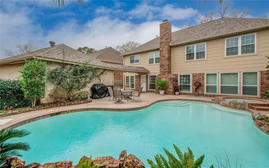 Your own backyard paradise for entertaining awaits, where a sparkling POOL, swaying palms, and added privacy create the perfect setting for weekend gatherings or quiet evening escapes. From there, step inside this beautifully refreshed Perry Home in Oaks of Atascocita, where light-filled living spaces flow effortlessly into an updated kitchen with GRANITE counters, stainless appliances, gas cooking, DOUBLE OVENS (2025), and a sunny breakfast room with pool views. Upstairs, a giant game room and flexible bonus space offer endless options for work, play, or guests, with walk-in closets and generous storage throughout. WINDOWS replaced 2021. Thoughtful upgrades include a newer roof, A/C, windows, iron staircase railing, backyard gate, and a Whole-house GENERATOR for peace of mind. Just steps from Oaks Elementary and minutes to shopping and dining, this home truly delivers comfort, convenience, and a picture-perfect ending to every day.