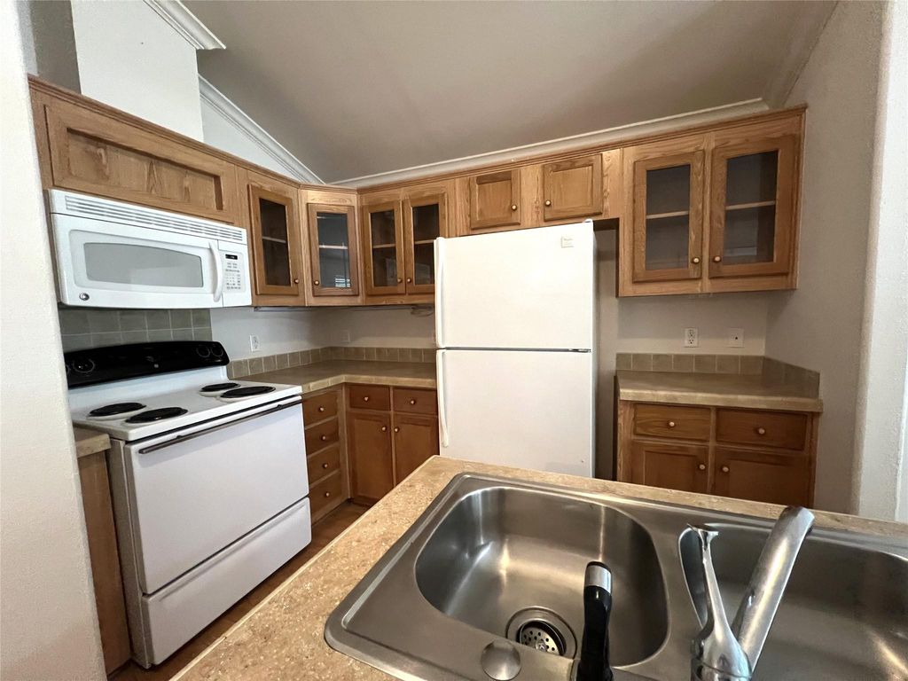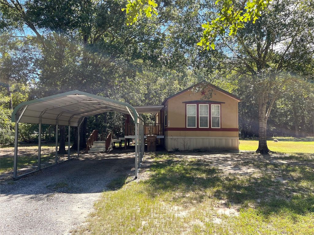 This is a super cute 1 bed room 1 bath manufactured home in a park off of FM 1696. The home is open concept kitchen, dining and living room. Kitchen has a great island and lots of counter and cabinet space. There are washer and dryer hook ups in the hall across from the large walk in closet. This home maybe small but it has a lot of storage areas. Outside there is a great size covered front porch and nice shad trees. Call today for your personal showing.