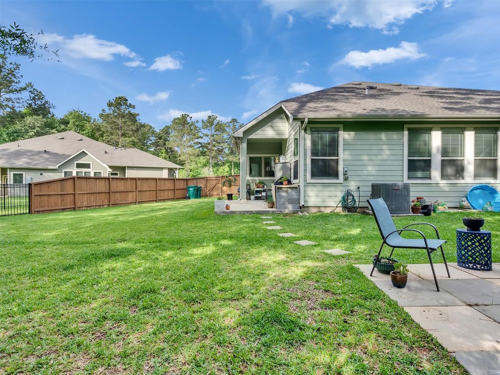 Beautiful Villas in the highly desirable Woodforest master-planned community. This well-maintained 3-bedroom, 2-bath home offers open-concept living with modern finishes throughout and high ceilings. Kitchen features quartz countertops, stainless steel appliances, ample cabinetry, and a large island that opens to the living and dining areas perfect for entertaining. Private primary suite includes an ensuite bath and generous closet space, while secondary bedrooms provide flexibility for guests or a home office. Low-maintenance, lock-and-leave living w/ HOA managed exterior upkeep, ideal for busy lifestyles or frequent travel. Ideally situated on cul-de-sac, backs to a private reserve with no rear neighbors, offering added privacy. Exceptional amenities including resort-style pools, parks, miles of scenic walking and biking trails, a golf course, tennis courts, and convenient access to shopping and dining within the community. Acclaimed schools and easy access to major thoroughfares.