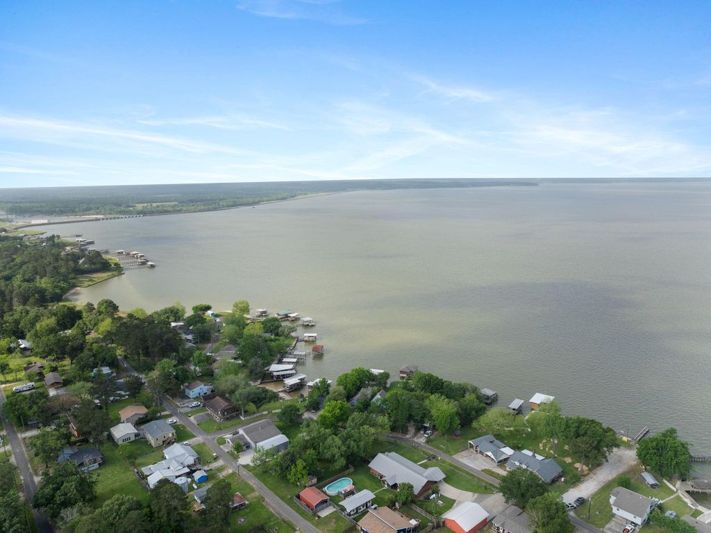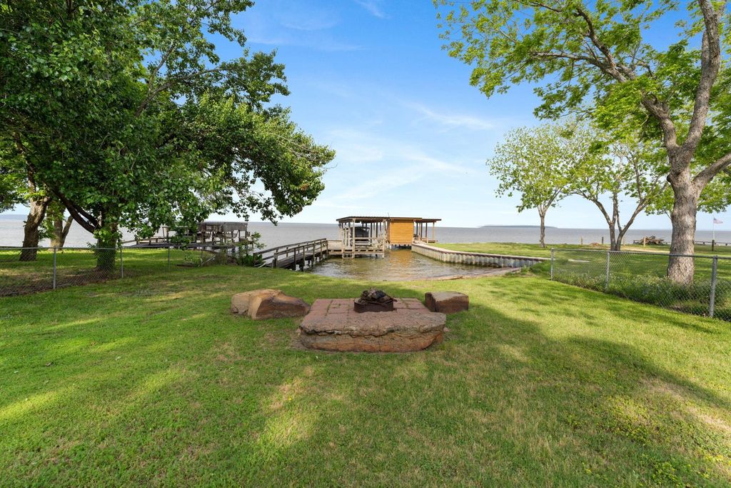 Stunning lakeview home on 5.5 lots w/additional almost 1/4 acre lakefront lot featuring your own boat dock & lift, perfect for summer enjoyment! This remarkable property offers a spacious above-ground pool w/ample decking for relaxation, RV storage on slab w/full hookups, covered boat parking, oversized detached garage equipped w/3 insulated roll-up doors including one for golf cart-essential for holiday events! 20,000-watt generator.Unwind on front porch or enjoy grilling & dining under expansive covered carport or gazebo by the water.Inside this beautiful log-style home, host gatherings in large family room w/ views of lake & a cozy wood burning fireplace. Kitchen features quartz countertops, commercial grade gas range, double ovens & picturesque lake views. Gather around kitchen island or entertain in the formal dining room. Spacious primary bedroom w/ensuite. Double vanities. 2 walk-in closets. Large secondary bedrooms.See attachments for upgrades & improvements.Vacation Rental OK.