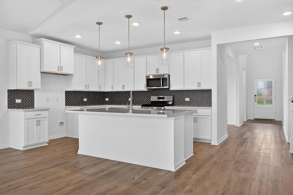 1st Floor; Center Island, Quartz Counters, Dining Area, Eat In Kitchen, Open to Family Room, Pantry