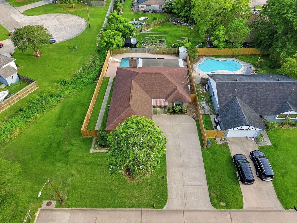 Charming 3 bed, 2 bath home you won’t want to miss! Located in close proximity to Dickinson High School and with NO HOA, this beautifully maintained property features a heated pool and hot tub—perfect for year-round entertaining—plus a full-home Generac for reliable power. The kitchen showcases custom cabinetry and marble countertops, blending style and function. Spacious, move-in ready, and ideal for families or those who love outdoor living. Truly a must-see!