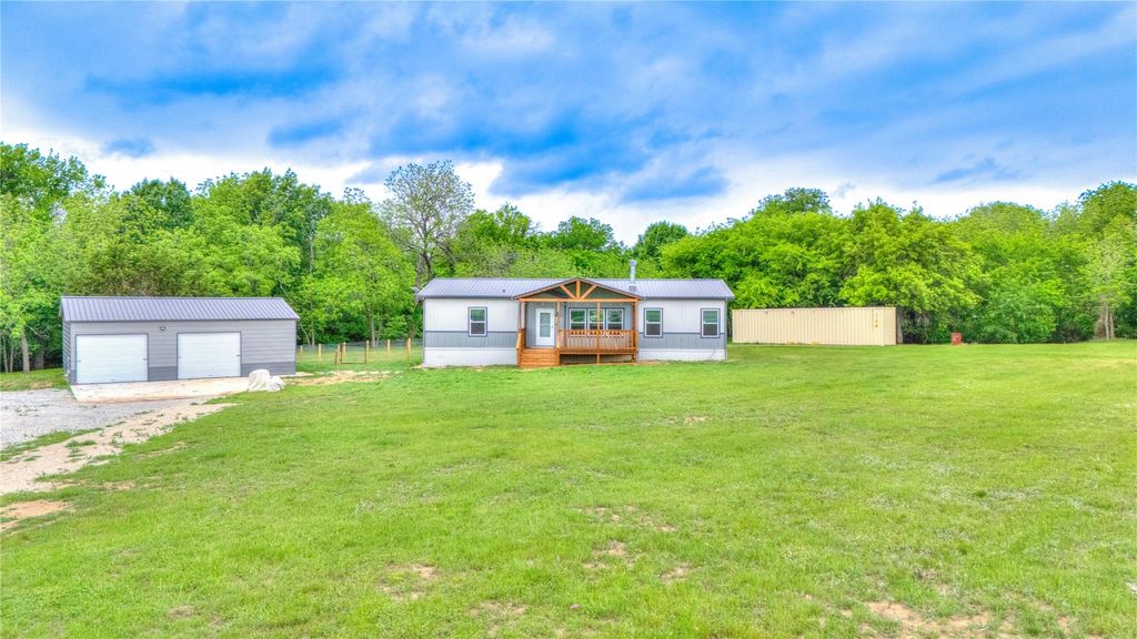 Peaceful country living on 2 acres! This bright and open 3 bedroom, 2 bath home features a warm, inviting layout with a cozy fireplace, spacious kitchen island, and walk in pantry, ideal for everyday living and entertaining. The primary suite offers a spa like bath with separate vanities, a freestanding tub, and a separate shower for added comfort. Enjoy the outdoors from the covered front and back decks, perfect for morning coffee, relaxing evenings, or hosting gatherings. The fenced yard provides plenty of space for pets to roam. A standout feature is the detached 2 door metal shop garage with power, newly constructed in 2025, along with a shipping container for additional storage. Refrigerator, washer, and dryer convey with the home for added convenience. A truly peaceful and relaxing property with room to breathe, just 10 minutes from grocery stores, restaurants, and coffee shops.