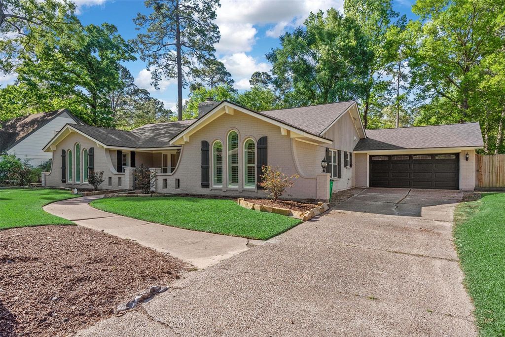 Remodeled single-story with stunning curb appeal, boasting an open layout & a chef’s dream kitchen. Step inside and be captivated! Expansive windows fill the main living area with natural light. Front windows feature elegant PLANTATON SHUTTERS. Enormous 9'x6' kitchen island w/quartz counter top, stainless appliances (Double Ovens & GAS cooktop) makes entertaining a joy. Laminate flooring throughout—NO CARPET! Energy-smart upgrades: insulated windows, spray foam insulation, new AC ductwork & TANKLESS water heater. Vaulted ceilings, brick fireplace & crown molding enhance charm. Outdoors: enjoy the patio pergola for relaxing or entertaining. WATER WELL with sprinkler system cuts water costs! Prime location, minutes from Hwy 59/69. Experience Kingwood living with 75+ miles of greenbelt trails, mature trees & top schools. Close to IAH, dining & shopping.