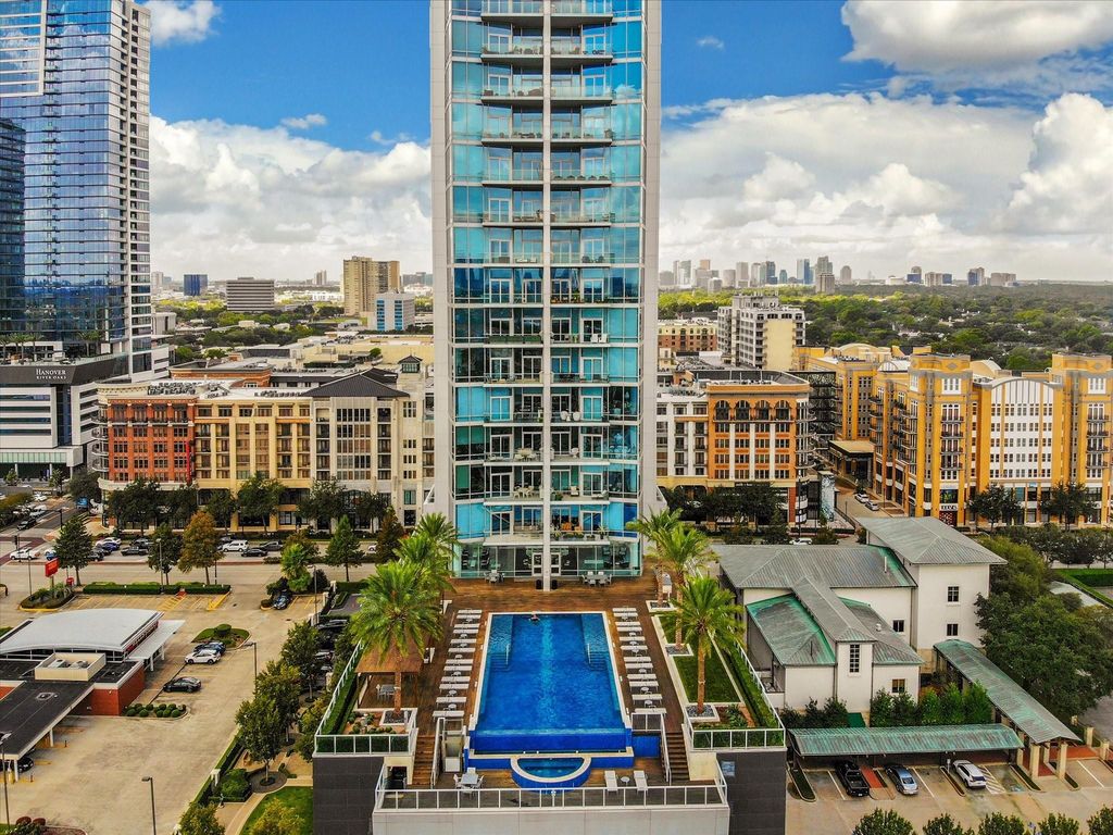 Direct elevator access opens to this 12th-floor 2-bedroom residence at 2727 Kirby with preferred southeastern views of Downtown, the Medical Center, and beyond. Open-concept layout with quartz countertops, Eggersmann cabinetry, and Gaggenau appliance package including gas cooktop. Primary Suite features balcony access, bath with dual vanities, soaking tub, separate shower, and Programme Martin customizable walk-in closet. Sizable terrace with built-in grill. Additional features include Lutron lighting, automated shades, Sonos-controlled sound system, and utility room. Two reserved parking spaces and assigned storage unit. Full-service building with infinity-edge pool, fitness center/spa, catering kitchen, sauna, valet parking, and so much more.