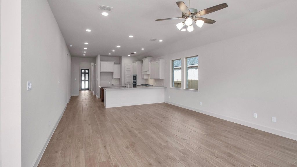 READY FOR MOVE-IN! Step off the front porch into an extended entryway boasting a 12-foot ceiling. A secluded guest suite is off the main hallway and features a linen closet, full bathroom, and walk-in closet. As you past the utility room you enter into the living areas of the home. The kitchen includes an island with built-in seating, a 5-burner gas cooktop and a walk-in pantry. The dining area extends into the family room which hosts a wall of windows. The primary bedroom boasts three large windows. French doors open into the primary bathroom featuring dual vanities, a linen closet, garden tub, glass enclosed shower, and generous walk-in closet. Secondary bedrooms boasting ample storage and a shared bathroom complete this floor plan. Extended covered backyard patio. Mud room off of the two-car garage.