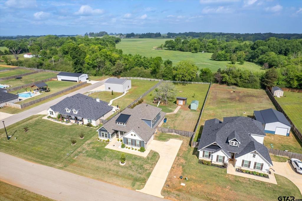 Welcome home to this spacious and thoughtfully designed 6-bedroom, 3-bath home on a spacious lot, conveniently located near Oak Hurst Golf Course, in Bullard ISD. A welcoming entryway sets the tone as you step inside to a well-appointed split floor plan, offering both comfort and flexibility for modern living. The first level features an open floor plan with a generous living area, a formal dining space, and an eat-in kitchen complete with a pantry. The primary suite is conveniently located downstairs, along with three additional bedrooms and an additional full bath, providing flexible options for unique homeowner needs that might include an office, playroom, or bonus room. Upstairs, you'll find an open loft space, flanked by two more bedrooms and a full bath, ideal for guests, a game room setup, or multigenerational living. Custom details, abundant storage, and transitional design with modern touches are found throughout the home. Step outside to enjoy the huge backyard, offering endless possibilities