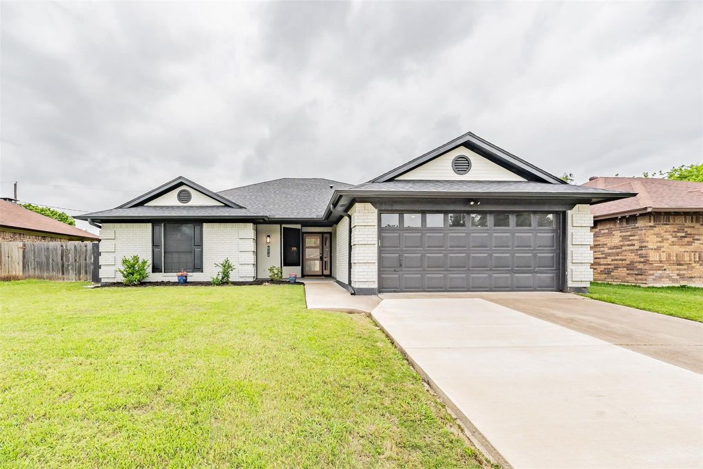 Check out this gorgeous home, completely renovated in 2024. This 3-bedroom, 2 bath home has a huge master bedroom, and master suite bathroom, dual walk-in closets, walk in shower, double quartz vanities on opposite walls. Located in a prime location off of Matlock and Sublett and within the coveted Mansfield ISD. As you walk up to this home you are greeted by a modern mahogany front door with sidelight with black and gray exterior, which gives this home major curb appeal. This home boasts a wide-open floor plan. With vaulted ceilings, luxury vinyl plank throughout, skylight, fireplace and an accent wall in living area give it an outstanding appearance. The kitchen includes Calcutta quartz countertops, backsplash and a waterfall island. You have plenty of storage and countertop space in this kitchen and a farmhouse sink. As you step out the back door you have a covered patio that looks out over the yard that provides an outdoor space to enjoy in the mornings or evening and just enough yard for everyone and the pups to enjoy. New Roof in 2024. Window solar screens.