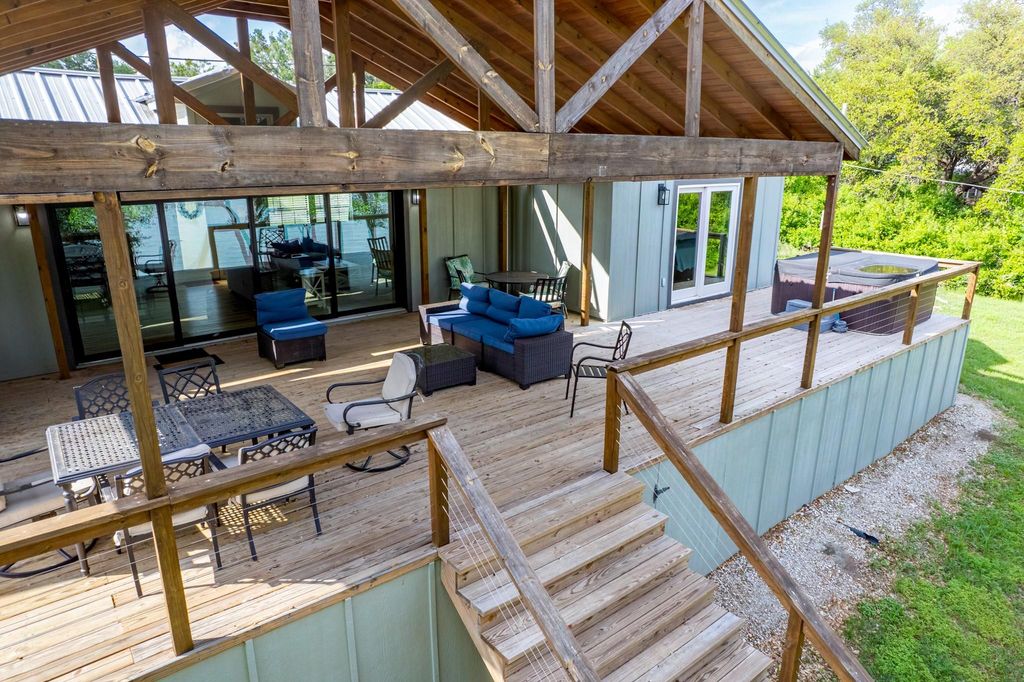Welcome to your perfect lakeside getaway! This inviting 3-bedroom, 2-bath home sits right on the shores of Lake Brownwood and has been a proven short-term rental for years, offering both a peaceful personal retreat and strong income potential. Designed for effortless lake living, the home features a bright open floor plan perfect for entertaining or simply enjoying the view. Large sliding glass doors invite you onto the expansive 60-foot deck, the true focal point of this home. With its vaulted wood ceiling, generous seating areas, and beautiful lake views, this deck is a perfect for relaxing, or family time. Grill out, unwind in the hot tub, or watch the sunset over the water with friends and family—this outdoor space is made for making memories. Inside, the thoughtful split floor plan provides privacy and comfort for you and your guests. The spacious primary suite includes an ensuite bath and easy access to the laundry area, while two additional bedrooms and a full guest bath are conveniently located on the opposite side. Energy-efficient windows, durable metal roof and siding, and low-maintenance finishes make ownership simple and stress-free. Outside, the gentle slope to the water leads you to a peaceful shoreline perfect for swimming, kayaking, or fishing just steps from your back door. Located on a quiet road with tons of by mature trees in the backyard, you or your guests will feel right at home. Whether you’re looking to expand your investment portfolio, start a turn-key STR, or find your forever weekend escape, this property delivers the best of both worlds: income potential and tranquil lakeside living, all wrapped into one exceptional package. This home can be purchased as-is for turnkey operation of the STR already in place. Come take a look today and make this piece of Texas YOUR next piece of Texas.
