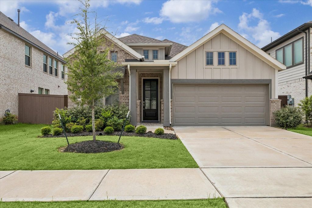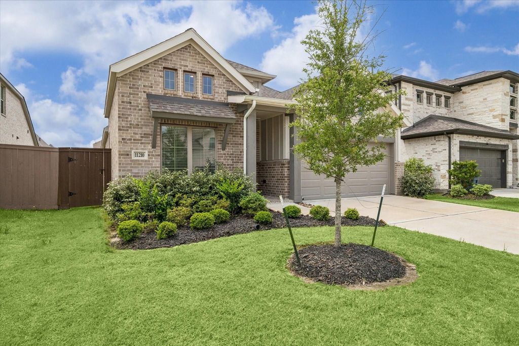 Beautiful move-in ready home in Humble offering the open-concept layout and modern finishes today's buyers want. Step inside to a bright, spacious living area with wood-look tile floors, recessed lighting, motorized blinds, and a wall of windows that fill the home with natural light. The stylish island kitchen features quartz countertops, white shaker cabinets, stainless steel appliances, gas cooktop, pendant lights, and a walk-in pantry, making it perfect for cooking and entertaining. The private primary suite includes a large bedroom and spa-inspired bath with soaking tub, separate glass-enclosed shower, dual vanities, and generous walk-in closet. Secondary bedrooms provide flexible space for guests, kids, an office, or hobby room. Outside, enjoy great curb appeal, a covered front porch, fenced backyard, and covered patio, ideal for relaxing evenings, pets, or weekend barbecues with convenient access to major Houston commuter routes, shopping, and entertainment, only 15 min to IAH.