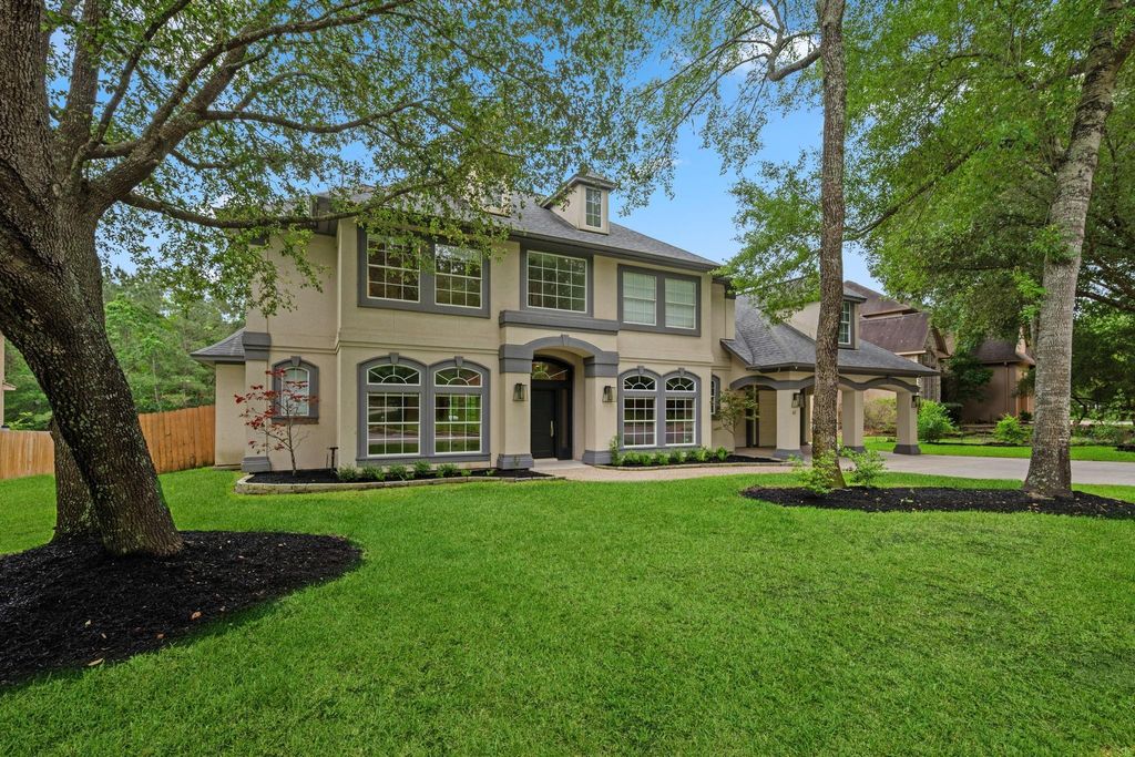 Welcome to the rarified enclave of Indian Springs, where this distinguished stucco estate commands an extraordinary position along the George Mitchell Nature Reserve. 4 bedrooms, 3 BA, 2 powder, home office & additional media room/5th bedroom unfold across meticulously appointed interiors, where travertine, wood, & marble flooring converge beneath sculpted tray ceilings adorned with cove lighting & bespoke built-ins. The chef's island kitchen, complete with butler's pantry, 5-burner gas cooktop, & double ovens, speaks to the most discerning connoisseur. Primary suite also opens seamlessly to your private resort-caliber pool & spa, complemented by an outdoor kitchen, fireplace, & covered patio. Upstairs, a game room & bonus room offer refined versatility. Secondary bedrooms include a Jack & Jill, an ADD'L ensuite. The last 2 years sellers invested 30K in landscaping, updated secondary shower, new cabinetry in master BA, replaced pool heater & mother board, and new gas line to fire pit.