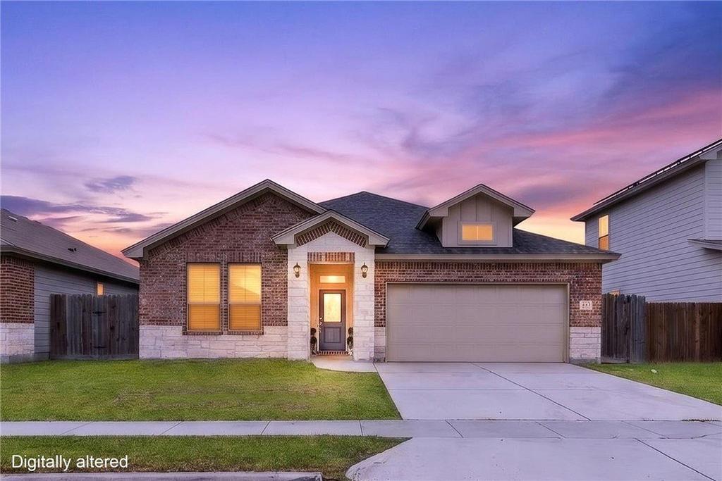 Modern design, clean lines, and a layout that actually works-this 3-bedroom, 2-bath home in Bay Ridge Subdivion is one that feels right the moment you walk in. A welcoming entry draws you into a bright, open living space that immediately feels comfortable and inviting. At the center, the kitchen sets the tone-an oversized island, quartz countertops throughout, pendant lighting, a white subway tile backsplash, and a two-tone cabinet design accented by gold hardware that brings contrast and depth. A walk-in pantry adds both function and convenience. The spacious living room is elevated by a tray ceiling and a shiplap fireplace, creating a clean, modern focal point. The primary suite is set apart for privacy and offers a generously sized retreat, complete with a tray ceiling, walk-in closet, and an ensuite with double sinks, a soaking tub, and a separate shower. The rest of the home continues with purpose-tile flooring in the main areas, a laundry room with cabinet and counter space, and a mudroom area near the garage currently styled with a bar that can easily adapt to fit your needs. Outside, the stone and Hardie exterior is complemented by a covered patio and a brand-new roof. Stainless steel refrigerator, living room TV, and bar are negotiable. **Schedule your private showing and experience it in person.**