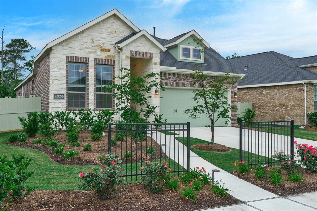 Welcome Home! Great Location convenient to I45 Shopping and Entertainment. Stylish Single Story home Ready for Immediate Move in! 3 Bedroom with Study ( Study does have a closed and cloud be used as a 4th bedroom) 2.5 bathrooms, 2 car garage PLUS Covered Patio. This home backs up to a nature preserve so no back neighbors for lots of privacy. ALL Appliances are included microwave, Fridge, Washer, Dryer, and front yard maintenance is also included. Very open floor plan with gorgeous vinyl flooring and tile throughout bedrooms have carpet, gourmet style kitchen with large island, counter top seating area, beautiful cabinets and counter tops, lots of storage, Primary suite is spacious with lux bathroom. Enjoy access to the communities state of the art amenities just down the street including a resort style pool and pool barn with outdoor kitchen, playground, walking trails, bowling, bocce ball greens and horseshoe pits.