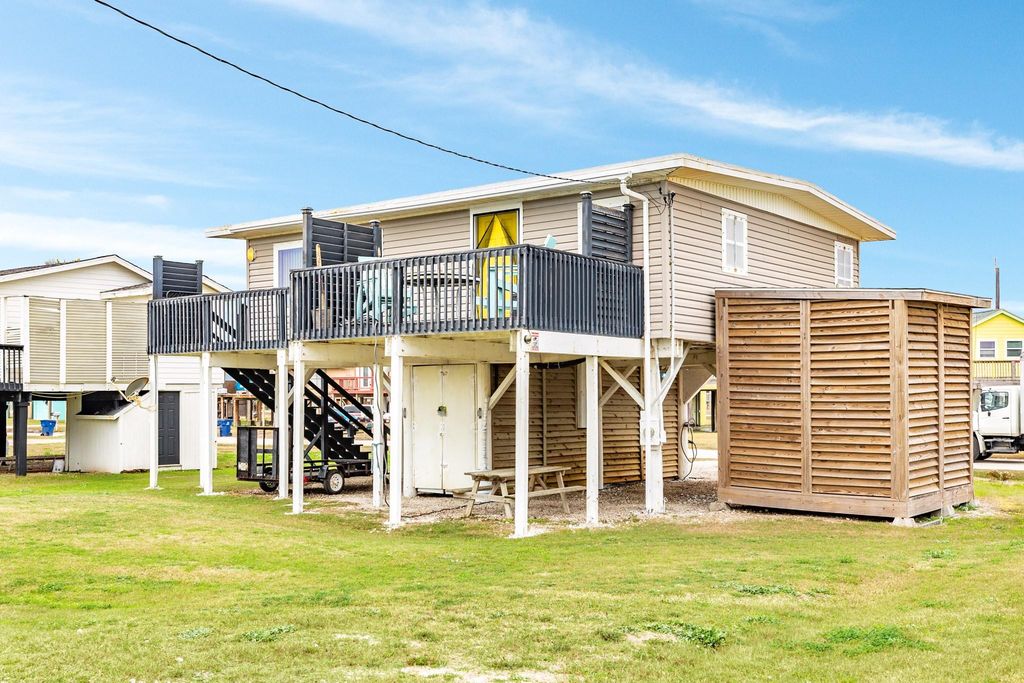 Gulf view • No HOA • Remodeled 2022 Enjoy unobstructed Gulf views from this updated second-row beach home in Surfside Beach—just steps from the sand and Jetty Park (0.2 mi). Remodeled in 2022 with granite countertops, luxury vinyl flooring, stainless finish appliances, modern lighting, and updated bath. Features include storm shutters, a whole-house UV water filtration system, TV stand with electric fireplace, and energy-efficient window units. All appliances convey, including refrigerator and stackable washer/dryer. Covered outdoor space below and a detached shed offer room for beach gear or golf cart. Located on a quiet street with no HOA and strong rental potential. Ideal as a vacation home, rental, or primary residence near local restaurants, bait shops, and marina.