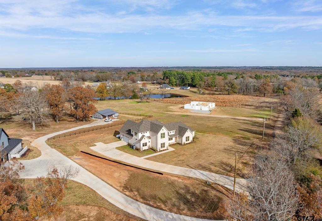 Welcome to this exceptional new construction home in a beautiful country-style subdivision on over .7 acres with breathtaking scenic views. Offering 3,328 square feet of thoughtfully designed living space, this home blends modern comfort with timeless country charm. The main level features a beautiful kitchen with a hidden pantry, a spacious primary suite with an absolutely stunning bathroom and oversized closet, along with an additional downstairs bedroom, private office, and and elegant half bath. The open layout captures natural light and showcases the peaceful acreage views from nearly every angle. A beautiful wide staircase leads upstairs to a generous bonus room, two additional bedrooms, and a full bath--each space offering more incredible views of the surrounding landscape. With 4 bedrooms, 3.5 baths, an office, and a bonus/flex room, this home provides flexibility for family living, work from home or entertaining, all in a serene country setting just a short drive from the rapidly growing Tyler, TX.