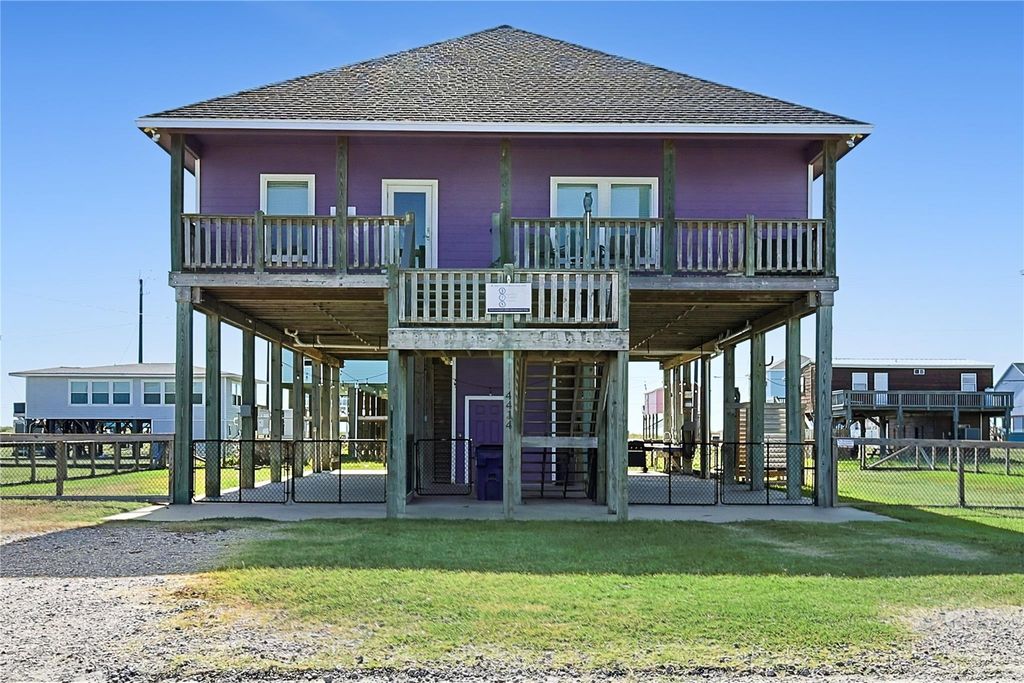 San Luis Beach home featuring three bedrooms and 2.5 bathrooms. Enjoy both beach and bay views from this property. Interior features include granite countertops and an island in the kitchen. The home boasts an open floor plan, perfect for entertaining. The property is fully fenced for added privacy and security.