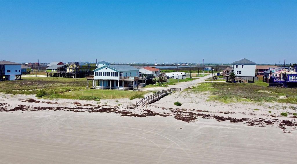 Turnkey beachfront home in Surfside Beach with sweeping Gulf and bay views! Fully furnished, well maintained, and rental-ready, this beautifully updated home features 4 separate bedrooms, a fun bunk room, and 3.5 bathrooms—perfect for large families or groups. The spacious family room is open to the kitchen and dining area, all filled with natural light from windows facing the Gulf. Enjoy both covered and uncovered expansive decks ideal for relaxing or entertaining. Recent upgrades include a new septic system, new A/C units, and modern interior finishes. Just steps from the sand, this home is a perfect coastal retreat with strong rental income potential. Don’t miss your chance to own a piece of paradise—move in or start renting immediately!