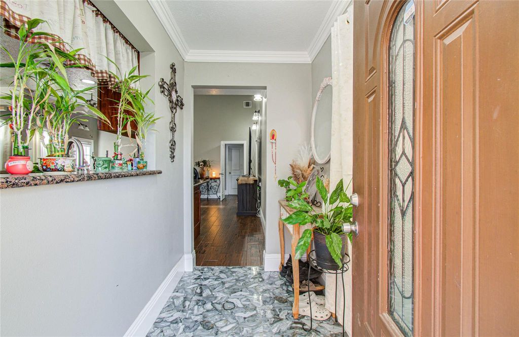 Step into this beautifully renovated one-story home offering 3 spacious bedrooms and 3 full bathrooms, thoughtfully designed for comfort and modern living. The open-concept layout is enhanced by soaring high ceilings, elegant crown molding, and an abundance of natural light, creating a bright and inviting atmosphere. This move-in ready home combines style, functionality, and sophistication—perfect for buyers seeking quality and convenience. Conveniently located with easy access to major highways, shopping, and dining.