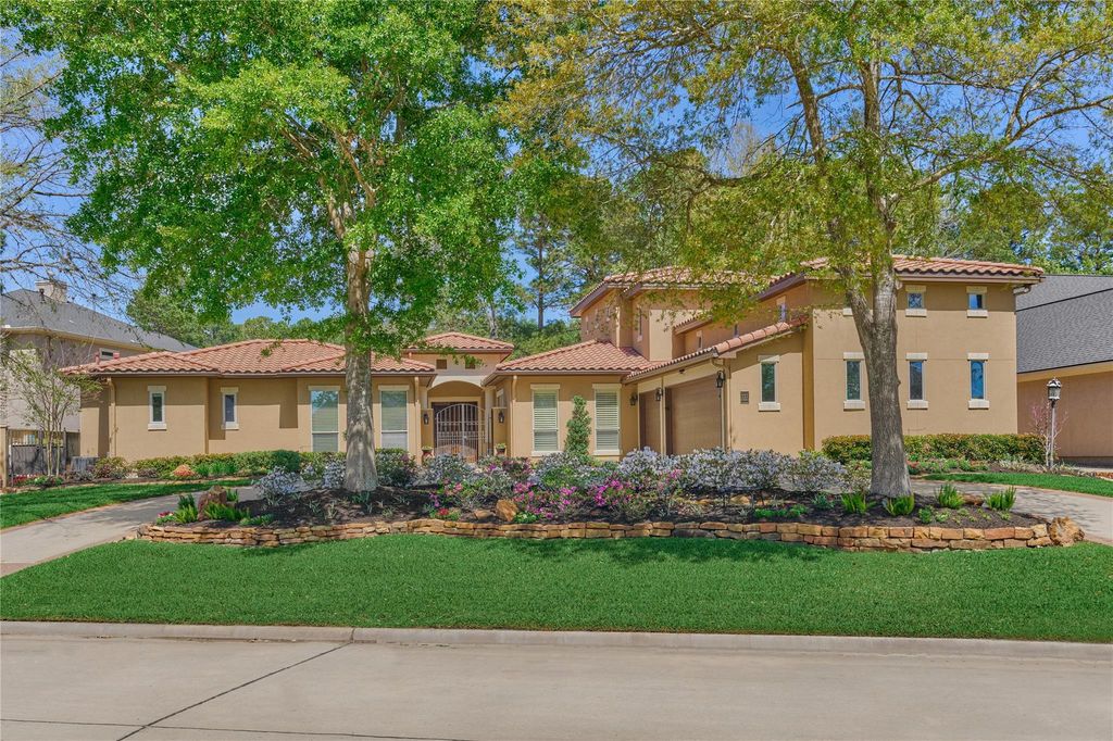 Magnificent Tuscan-style golf course estate, custom-built by renowned builder Brand R Construction, in the highly sought-after lake & golf community of Bentwater. This luxurious home is positioned on the Miller #9 green along a beautiful waterfront street. Charming courtyard entry w/hand-carved DBL doors open to a stunning foyer. Elegant spaces include a grand dining RM, an impressive wet bar & a wine cellar. The expansive eat-in kitchen features a huge breakfast bar, & a Roper built-in fridge. Butler’s pantry w/KitchenAid DBL ovens. French doors in the living RM open to a serene backyard overlooking the golf course. Owner’s retreat boasts of a luxurious ensuite bath. Upstairs includes a bed RM w/an ensuite bath, a game RM, & a huge walk-in attic. Outdoor living is exceptional w/a heated courtyard POOL & SPA, & two patios w/motorized screens. CASITA W/2 bed RM's-each w/ensuite baths! EXTERIOR PAINTED & 3 NEW H2O's (2025), GENERATOR! GRAND PINES MEMBERSHIP AVAILABLE! PULL FEATURE SHEET