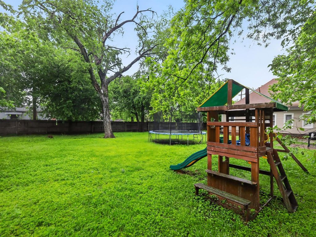 This 3 bed 2 bath home offers 1,520 sq ft on a 0.29-acre lot. Kitchen features wood cabinets, pantry, stainless steel appliances, and a new dishwasher (2022) with tile flooring. Dining area has wood floors; living room and bedrooms are carpeted. Bathrooms include tile flooring and under-sink cabinetry, plus a dedicated laundry area. Exterior includes a front porch, back deck, and wide fenced backyard. Mini storage shed adds functionality, and the trampoline and wooden play set convey. New HVAC system and new washer & dryer help reduce upfront costs. Ideal for owner-occupants or investors seeking space and value.