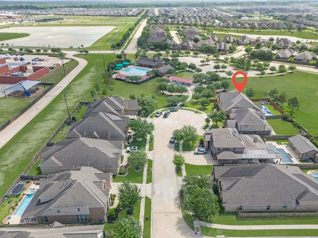 NO BACK NEIGHBORS! Sparkling pool & spa on this oversized cul-de-sac lot offering ultimate privacy! 4 bedrooms, 3.5 baths, 3-CAR GARAGE, game room, MEDIA room, plus a dedicated home office. This home has it ALL! Upon entering, you are greeted with 2-story ceilings & an open concept that extends throughout the home. A formal dining & office lead you to the kitchen w/ SS appliances, granite counters, upgraded lighting, & open to the family room. The primary retreat in the back of the home features an en-suite bath w/ double sinks, DOUBLE CLOSETS, tub, & shower. Upstairs, the game room & media provide ample entertainment & 3 guest bedrooms + 2 full baths. Outside, the oversized covered patio features motorized shades & serene views from the recent pool/spa! Additional features include walking distant to park & neighborhood schools, water softener, 2 yr old roof + full gutters, lush landscape, surge protector, HALO duct purification system, sprinklers, reverse osmosis, & MUCH MORE!