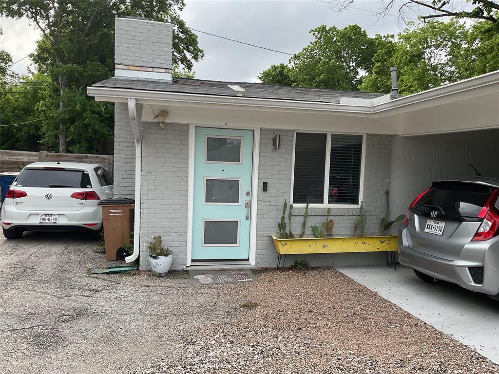 Renovated duplex in hot East Austin neighborhood. Available early June 21st-July 1st. Open floor plan, living area has high soaring ceilings, wood burning fireplace and wood looking floors. Open to kitchen with quartz counter tops, stainless steel appliances, Stainless steel sink and faucet, breakfast bar, recessed lighting, lots of windows and breakfast area. Spacious main bedroom with ceiling fan, light and bright updated bathroom. 2nd bedroom. Carpet in the bedrooms, paint and other improvements in progress. Large fenced front yard. washer & dryer in carport storeroom each side has their own washer & dryer. The carport separates unit A and B providing privacy and reducing any noise. 1 covered parking space in the carport and another space in the driveway. Incredible location providing easy access to parks, restaurants, Mueller, 183 and 290.
