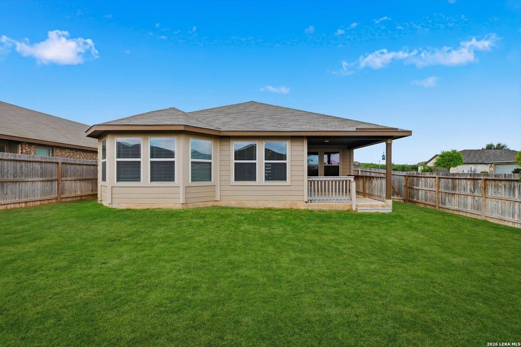 Built in 2023 and beautifully maintained, this Energy Star Certified one-story home offers the perfect blend of modern comfort and convenience! Featuring 4 spacious bedrooms and 2 baths, this light-filled home showcases a stunning kitchen with granite countertops, a large island ideal for gathering, and appliances that convey-making it truly move-in ready. The primary suite is a standout with a charming bay window that brings in even more natural light. Step outside to enjoy a large covered patio, perfect for relaxing or entertaining. Conveniently located near Randolph AFB, shopping, restaurants, schools, HEB, and The Forum, this home also includes the peace of mind of a 10-year builder warranty. Don't miss this incredible opportunity!