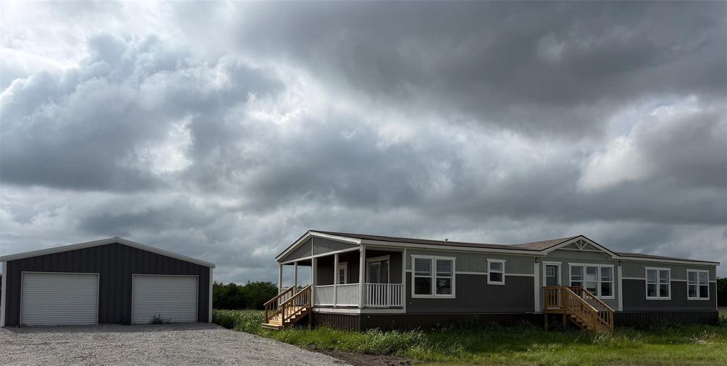 New 4 Bedroom, 2 Bath, Home on 3.955 acres with pond. Large Primary Bedroom with Ensuite Bath featuring Garden Tub, Large Separate Shower, Dual Vanities, Walk-In Closet and more. Open Living Room. Kitchen with Island, Farm Sink, Abundant Cabinets, All Appliances. Covered Patio with railing and stairs. Oversized Utility with room for freezer and mud room. 30 x 30 Workshop - Garage with power and Dual Overhead Doors.