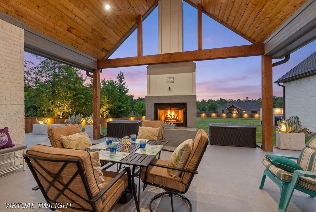 Built in 2023, this stunning contemporary home in Cherokee Crossing offers the perfect balance of modern design, functionality, and peaceful country living on 1.43 acres in Tatum ISD. Thoughtfully designed with an open-concept layout, the home features a spacious living area that flows seamlessly into the dining space and a beautifully appointed kitchen. Highlights include quartz countertops, stainless steel appliances, double ovens, an oversized island ideal for gathering, and an expansive hidden walk-in pantry, along with a convenient wet bar for effortless entertaining. The private primary suite is a true retreat, featuring dual vanities, a soaking tub, a walk-in glass shower, and an impressive walk-in closet with center island and integrated safe room for added security. Two additional bedrooms are located on the main level, including one with a private ensuite bath and exterior access—perfect for guests or multi-generational living. Upstairs offers exceptional flexibility with a large bonus room that can serve as a fourth bedroom, media room, or game room, along with a dedicated office space and abundant attic storage. Designed for both comfort and convenience, the home also includes washer and dryer connections in the primary closet, a 3-car garage, and extensive storage throughout. Step outside to enjoy the covered patio with a cozy fireplace, creating an inviting space for year-round outdoor living. The property is pre-wired for a future pool and whole-home generator, offering endless potential to customize your outdoor oasis. With its blend of modern finishes, smart design, and serene setting, this exceptional property delivers elevated living just minutes from local amenities.